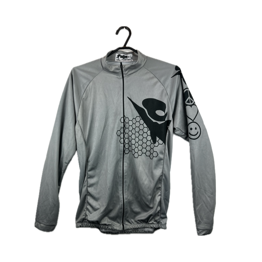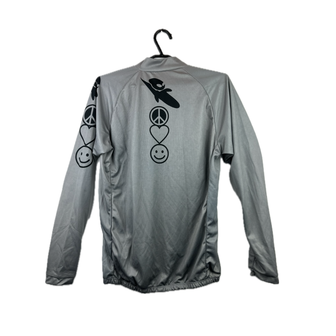 Cor: Prata com estampa em Preto nas mangas, frente e verso.